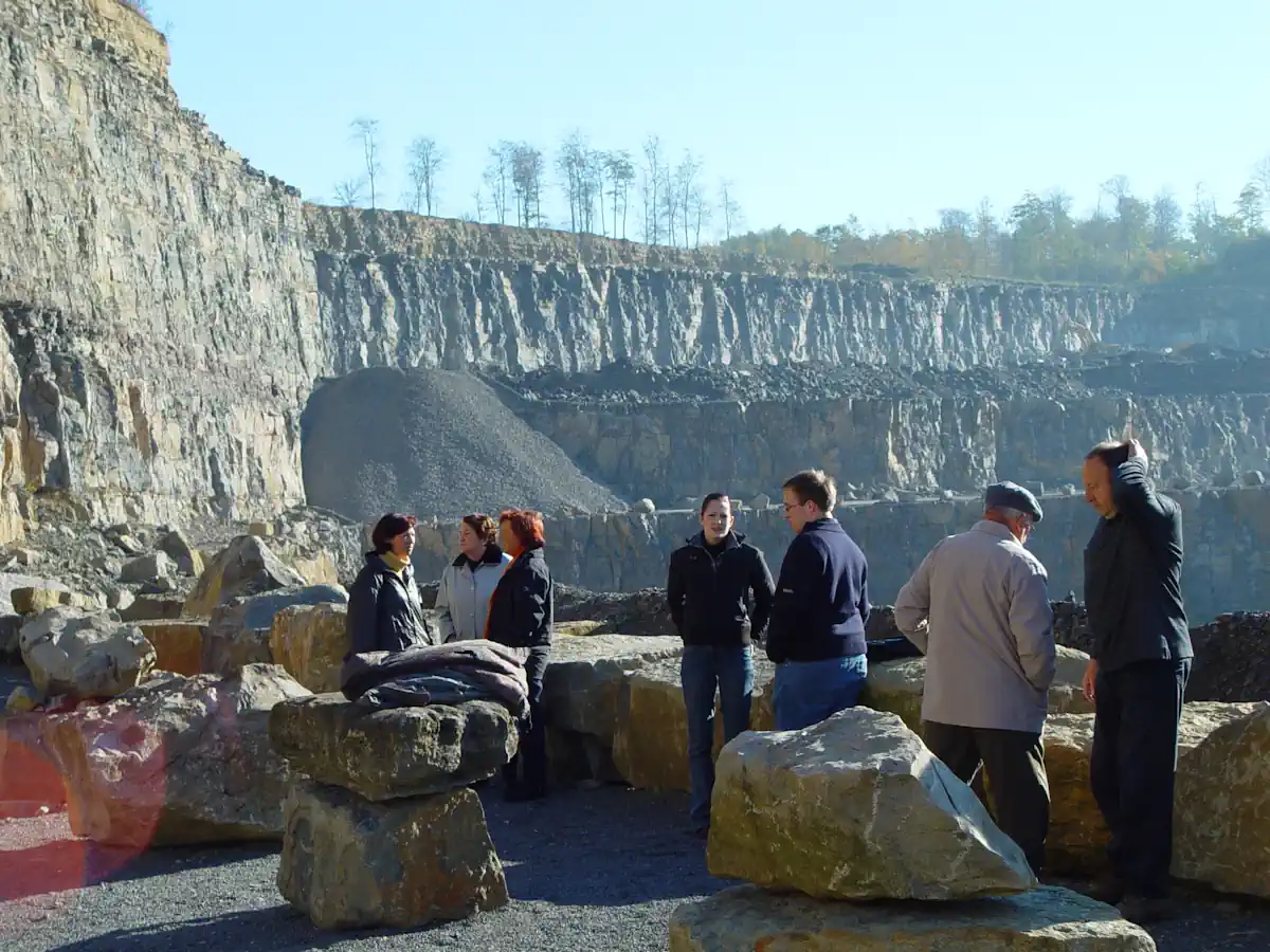 Wer nach der Erkundung noch verweilen möchte, findet im Wanderinformationszentrum viele Tipps für Touren und in Schillats Café & Biergarten regionale Spezialitäten mit Ausblick über den Steinbruch.